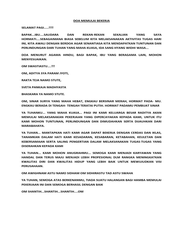 Doa sebelum bekerja hindu - Daftar Isi. You start the day downtown at the office building where you gather in a room with a whole bunch of other people to get hype for the day. Mantra Duduk Dengan Tenang 4.